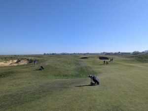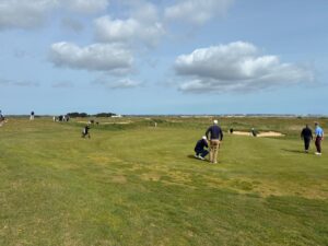 Usual hold up on the 5th hole at Deal. On Friday we played Dulwich in the Plate at Prince’s, who also lost their first round. We always knew this would be a tough game. At this stage teams are reduced from 10 players to 6, which like deciding the 10 man team and pairings is never an easy task for our Captain Pete. Well done Pete you did a great job. Again sadly we lost to Dulwich 2-1.